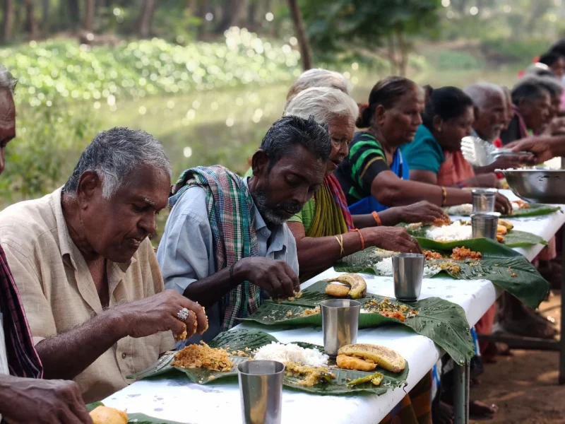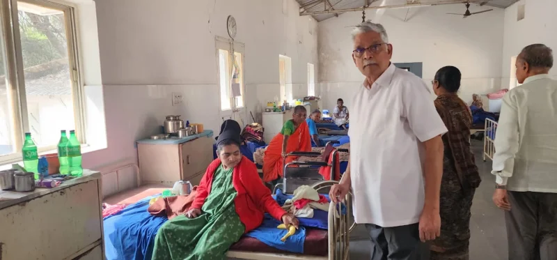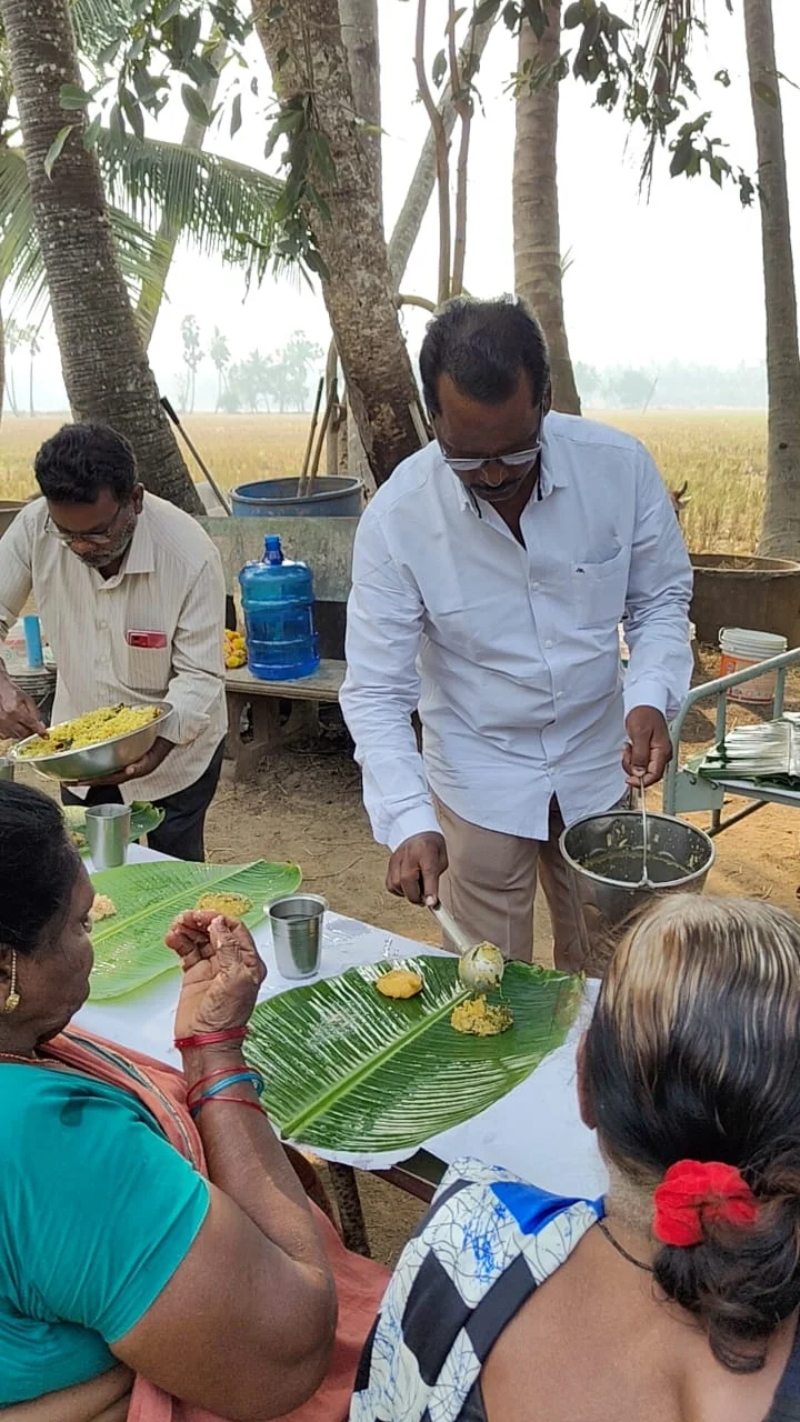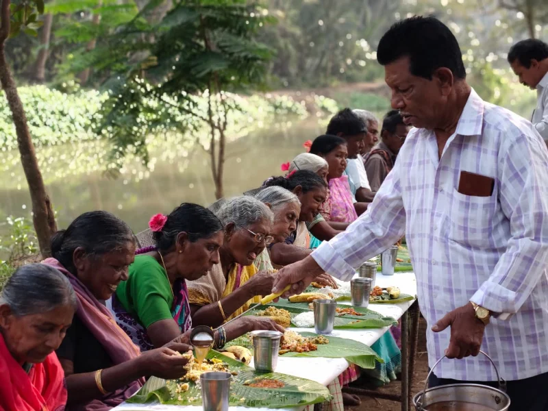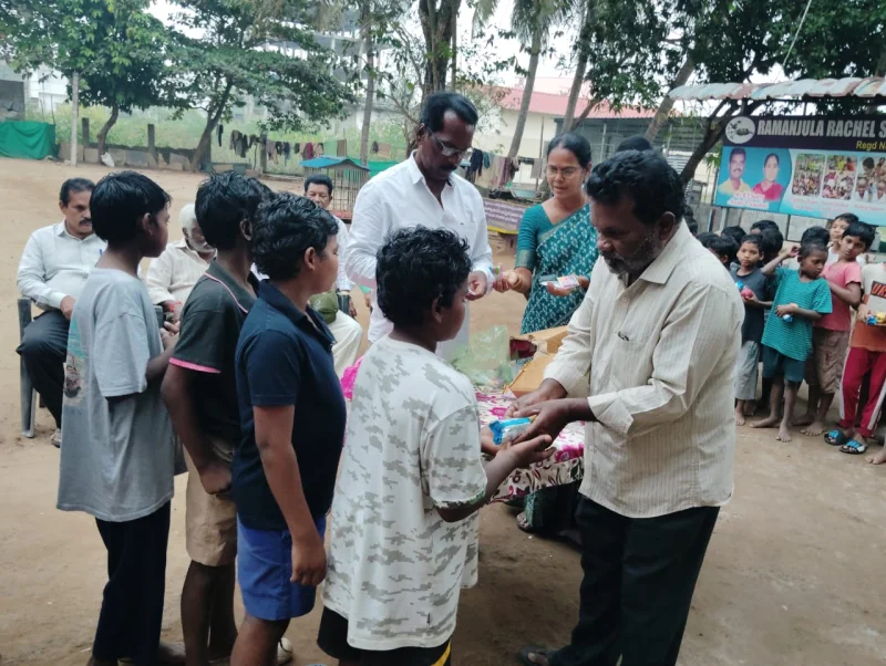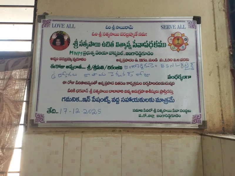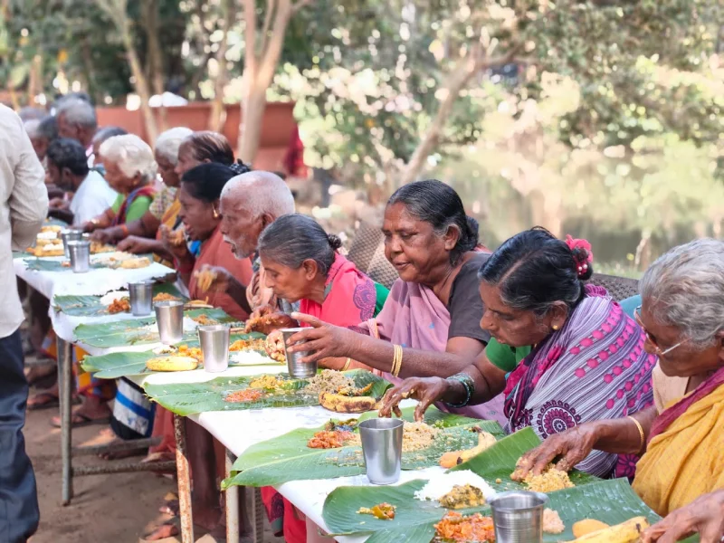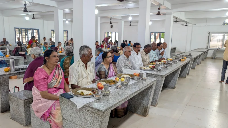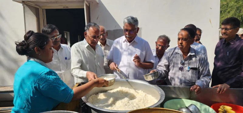 As part of the programme, fruits were distributed to elderly patients at the Palakollu Government Hospital. Subsequently, a free old-age home at Vedangipalem was visited, where food was served to the senior residents and time was spent with them in a warm and affectionate manner.