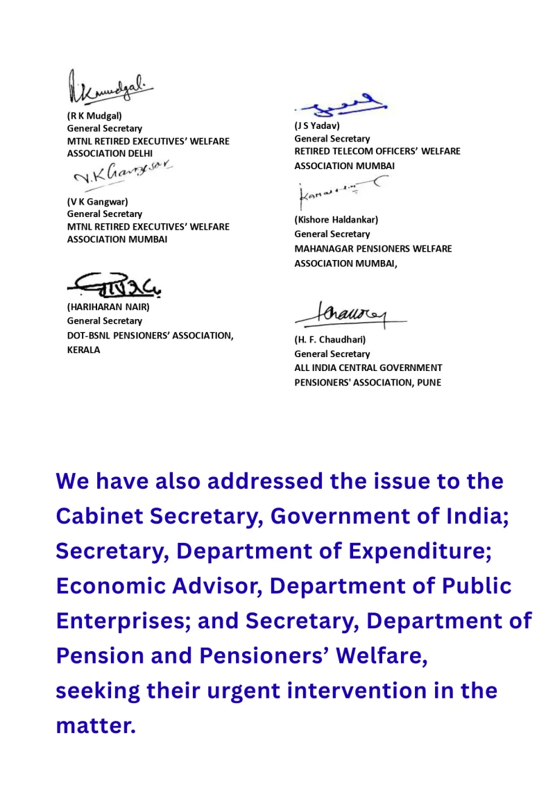 Immediately a letter, jointly signed by all GS of the above pensioners associations, will be sent to, demanding immediate release of Dearness Relief to BSNL/MTNL pensioners due from 1/1/2026 and periodic release of Dearness Relief every three months without causing any delay