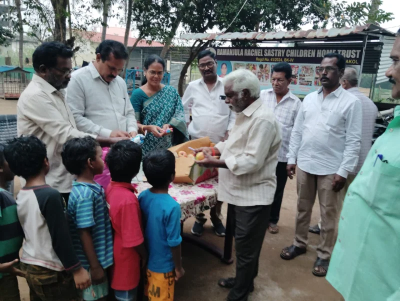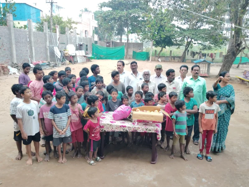 Later, the members visited a children’s orphanage near Palakollu Lions Hospital and distributed fruits, biscuit packets, and ball pens to the children.