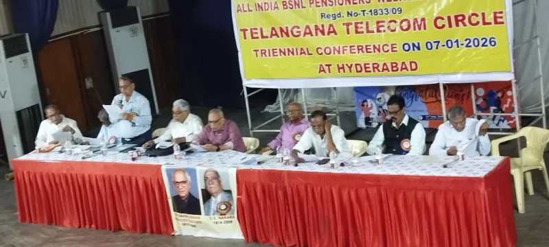 The 4th Triennial Conference of AIBSNLPWA, Telangana Circle was successfully held on 07 January 2026 at Asman Mahal Conference Hall, Hyderabad. Com. V. Vara Prasad, General Secretary (CHQ) attended the Conference and addressed the delegates. In his elaborate speech, he explained in detail the latest developments and important issues affecting BSNL pensioners, including: Pension Revision,validation Act, 8th Central Pay Commission (8th CPC) – Terms of Reference and related issues.